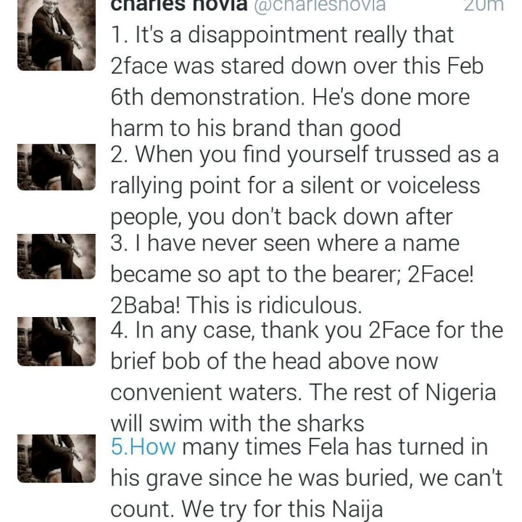 He tweeted these after Tuface uploaded video of himself cancelling the planned protest/march scheduled to hold on Monday, 6th Feb 2017. Moreover some people called him out for tweeting such 'nonsense', urging to kindly lead the protest as it seems 'he knows it all' !